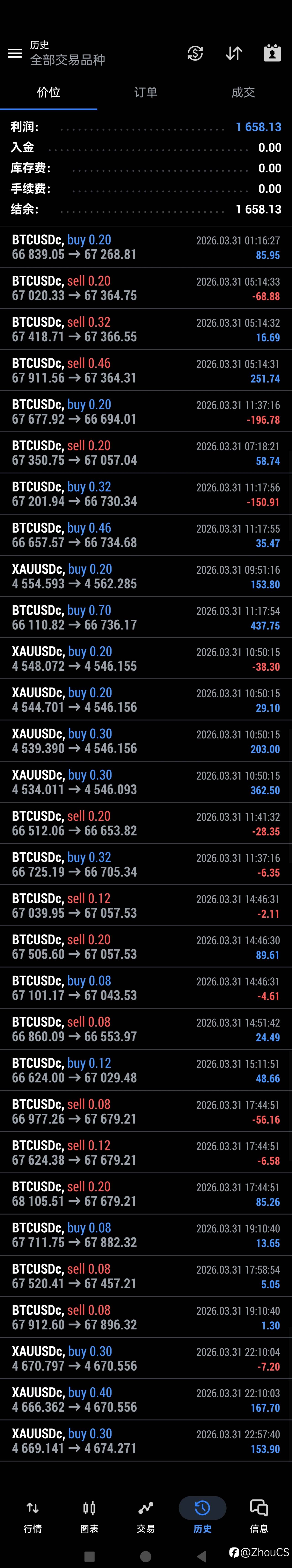 #BTC-三重平仓带止损机制EA EX美分全年无休新账户开跑中 每日分享昨日已平仓单子、发帖时及未平仓单 本想着优化后盈利能力会有所减弱,反而行情较大情况下增强不少 风险提示:本文所述仅代表作者个人观点,不代表 Followme 的官方立场。Followme 不对内容的准确性、完整性或可靠性作出任何保证,对于基于该内容所采取的任何行为,不承担任何责任,除非另有书面明确说明。