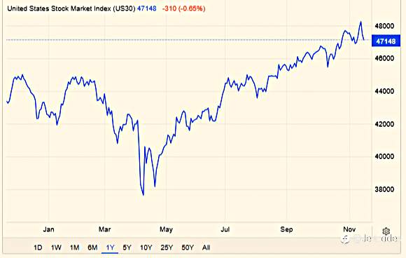 The United States Stock Market Index (US30) traded at 47,147 this Friday, falling 310 points (0.65%) from the previous session.