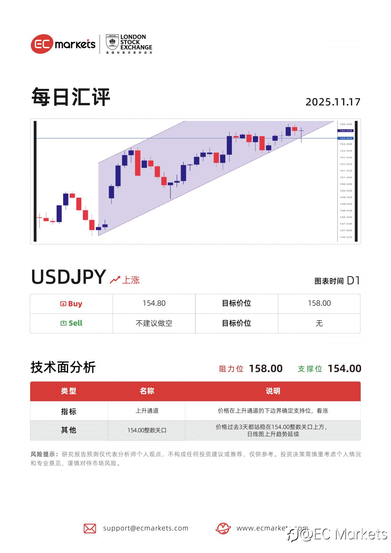 EC Markets 每日汇评 | 11月17日USDJPY #ECMarkets# #forextrading# #FX# #forexmarket# #trading# #USD/JPY# 风险提示:本文所述仅代表作者个人观点,不代表 Followme 的官方立场。Followme 不对内容的准确性、完整性或可靠性作出任何保证,对于基于该内容所采取的任何行为,不承担任何责任,除非另有书面明确说明。