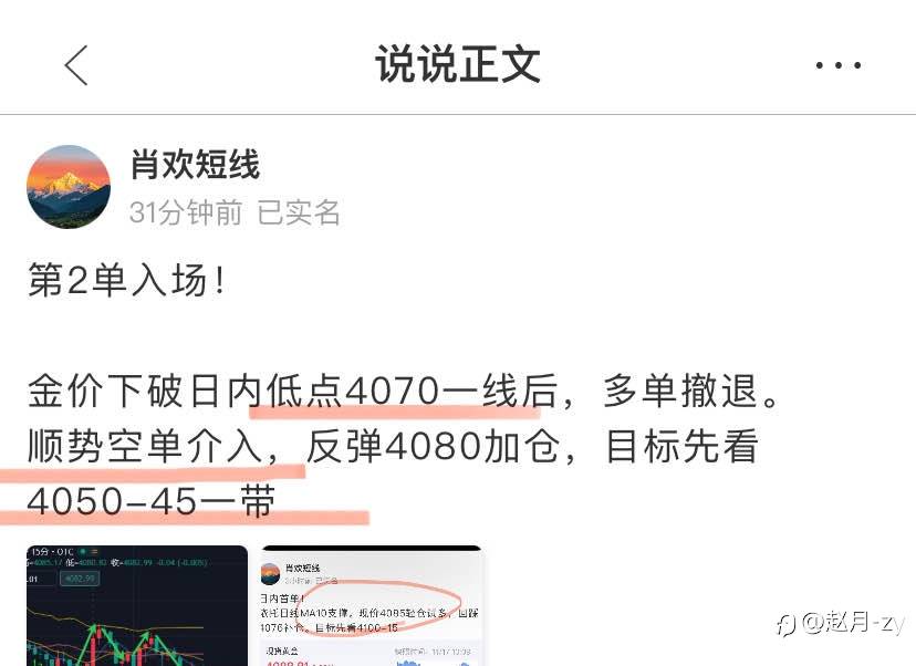 #XAU/USD# 空单金价在4050一线遇阻反弹4070.