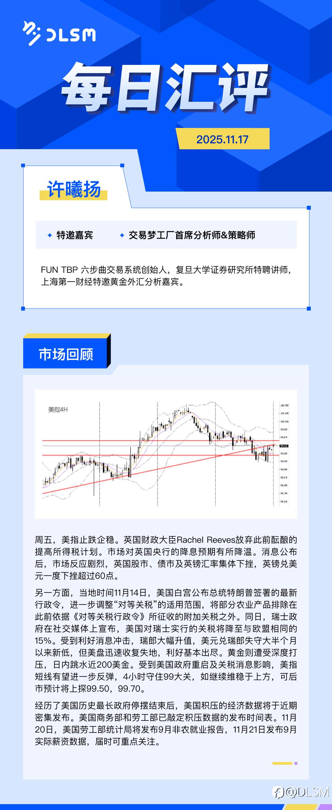 🔥DLSM·25年11月17日·每日汇评 风险提示:本文所述仅代表作者个人观点,不代表 Followme 的官方立场。Followme 不对内容的准确性、完整性或可靠性作出任何保证,对于基于该内容所采取的任何行为,不承担任何责任,除非另有书面明确说明。