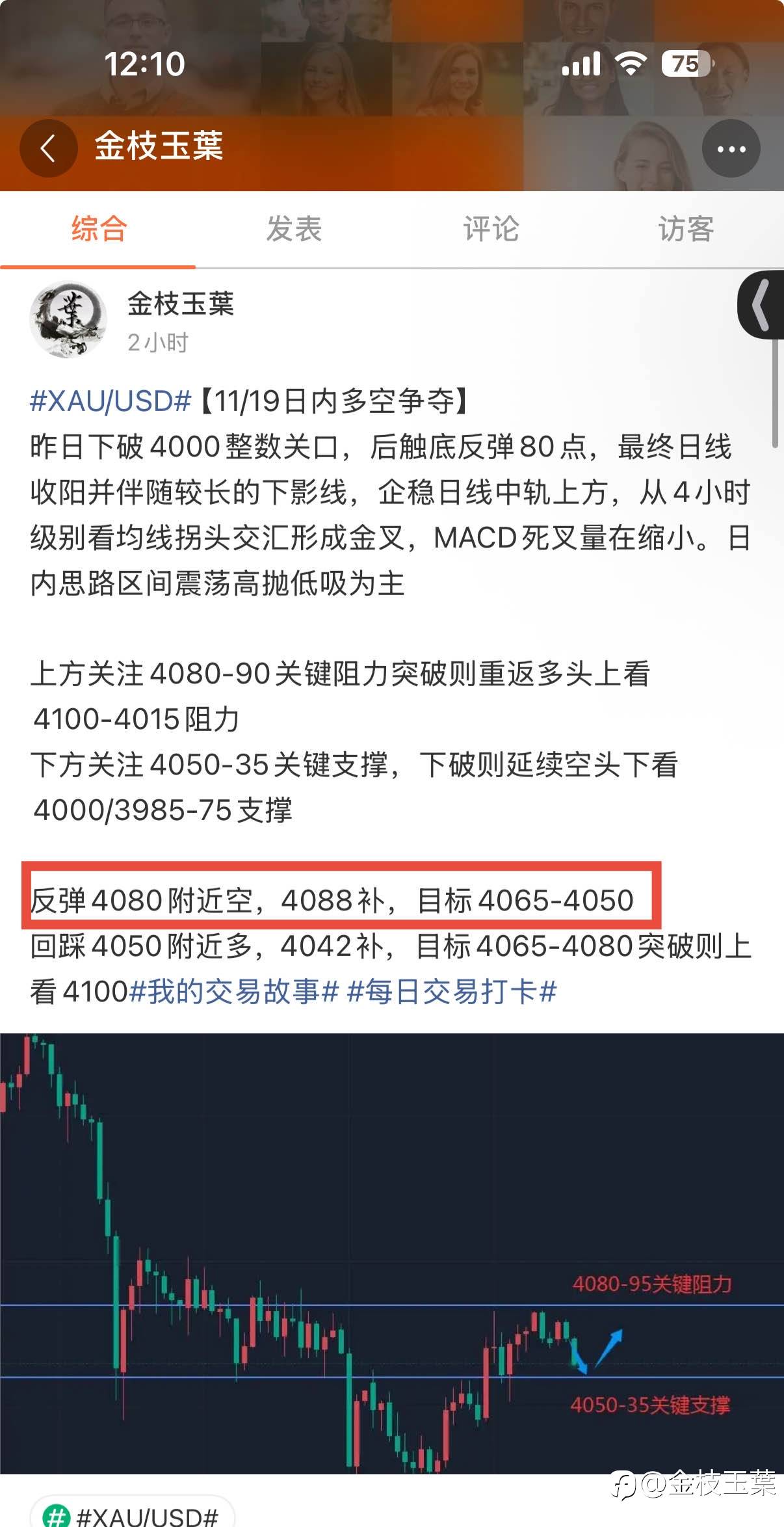 #XAU/USD# 【空单拿下,止盈减仓,斩获13点行情】 依托早盘布局思路4079空,到达第一目标4066止盈减仓,斩获13点行情,落袋1300刀 底仓4079保护继续持有下看4050附近,同时多单准备#我的交易故事# #每日交易打卡# #交易晒图# 风险提示:本文所述仅代表作者个人观点,不代表 Followme 的官方立场。Followme 不对内容的准确性、完整性或可靠性作出任何保证,对于基于该内容所采取的任何行为,不承担任何责任,除非另有书面明确说明。