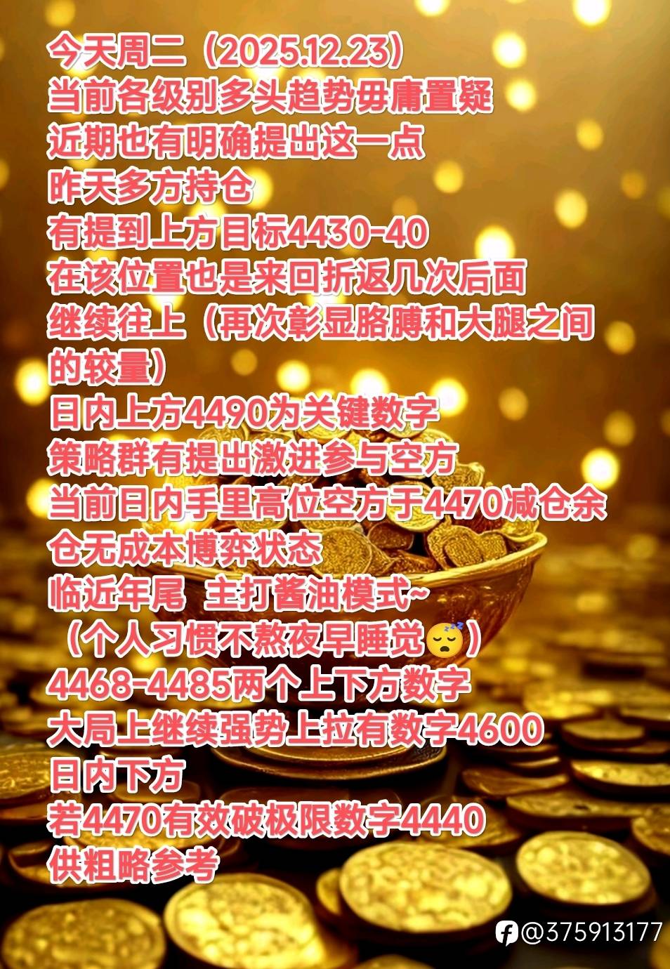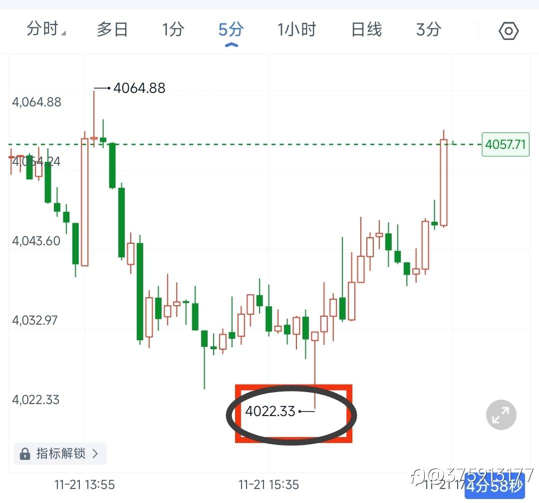 精准卡点4025~ 最低4022 这就是全程追踪的好处~ 周末快……乐~ 风险提示:本文所述仅代表作者个人观点,不代表 Followme 的官方立场。Followme 不对内容的准确性、完整性或可靠性作出任何保证,对于基于该内容所采取的任何行为,不承担任何责任,除非另有书面明确说明。