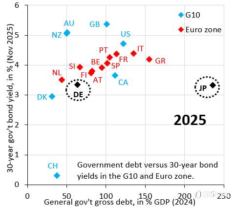 Japan has 240% debt-to-GDP (Germany has 65%)