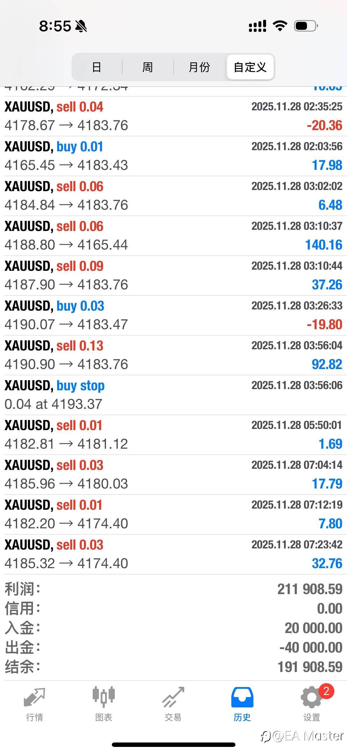 ea已跑一年、硬扛黄金不爆仓、也是奇迹了 一年翻了十倍#XAU/USD# #FOLLOWME交易大赛# #黄金多头是否已经力竭?# #做交易,是否真的有必要订阅信号?# #每日交易打卡# 风险提示:本文所述仅代表作者个人观点,不代表 Followme 的官方立场。Followme 不对内容的准确性、完整性或可靠性作出任何保证,对于基于该内容所采取的任何行为,不承担任何责任,除非另有书面明确说明。