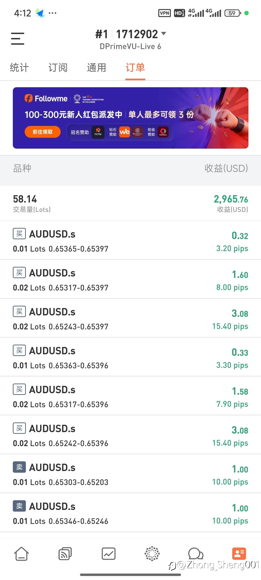 本月盈利还可以,有980美金一个账户。11月 完美收官。 再接再厉,12月稳定盈利。 欢迎订阅 风险提示:本文所述仅代表作者个人观点,不代表 Followme 的官方立场。Followme 不对内容的准确性、完整性或可靠性作出任何保证,对于基于该内容所采取的任何行为,不承担任何责任,除非另有书面明确说明。