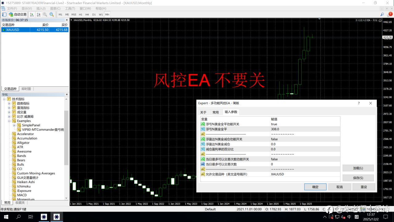 #每日交易打卡#自己加一个风控EA下去,这两天帮新用户测试帐号时,遇到两次极端行情,