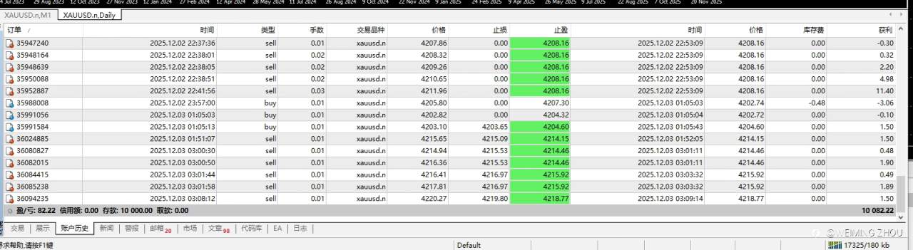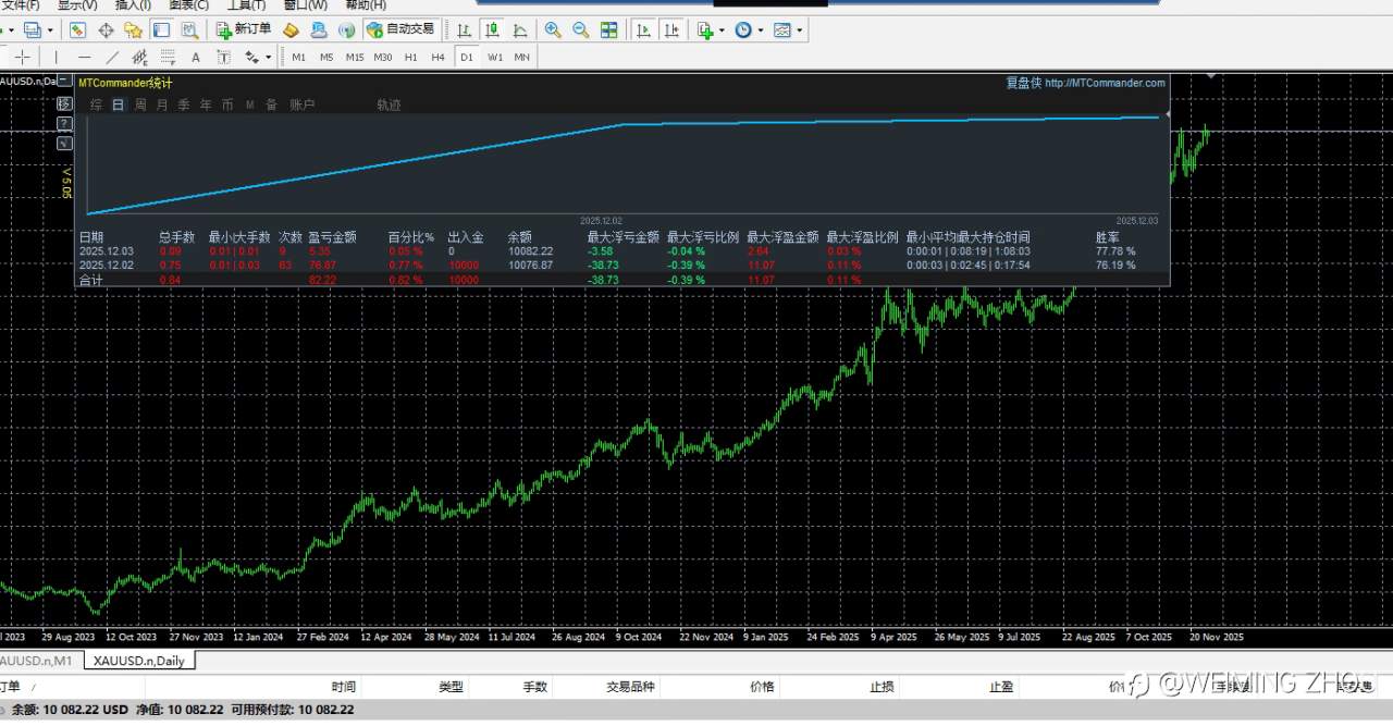 玖寰汇黄金一分钟加仓策略 Day1 资金 10000 风险提示:本文所述仅代表作者个人观点,不代表 Followme 的官方立场。Followme 不对内容的准确性、完整性或可靠性作出任何保证,对于基于该内容所采取的任何行为,不承担任何责任,除非另有书面明确说明。