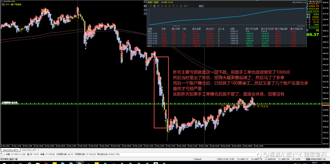 暂时先不搞小账户翻倍了,先用心赚钱,马上圣诞节休市了 风险提示:本文所述仅代表作者个人观点,不代表 Followme 的官方立场。Followme 不对内容的准确性、完整性或可靠性作出任何保证,对于基于该内容所采取的任何行为,不承担任何责任,除非另有书面明确说明。