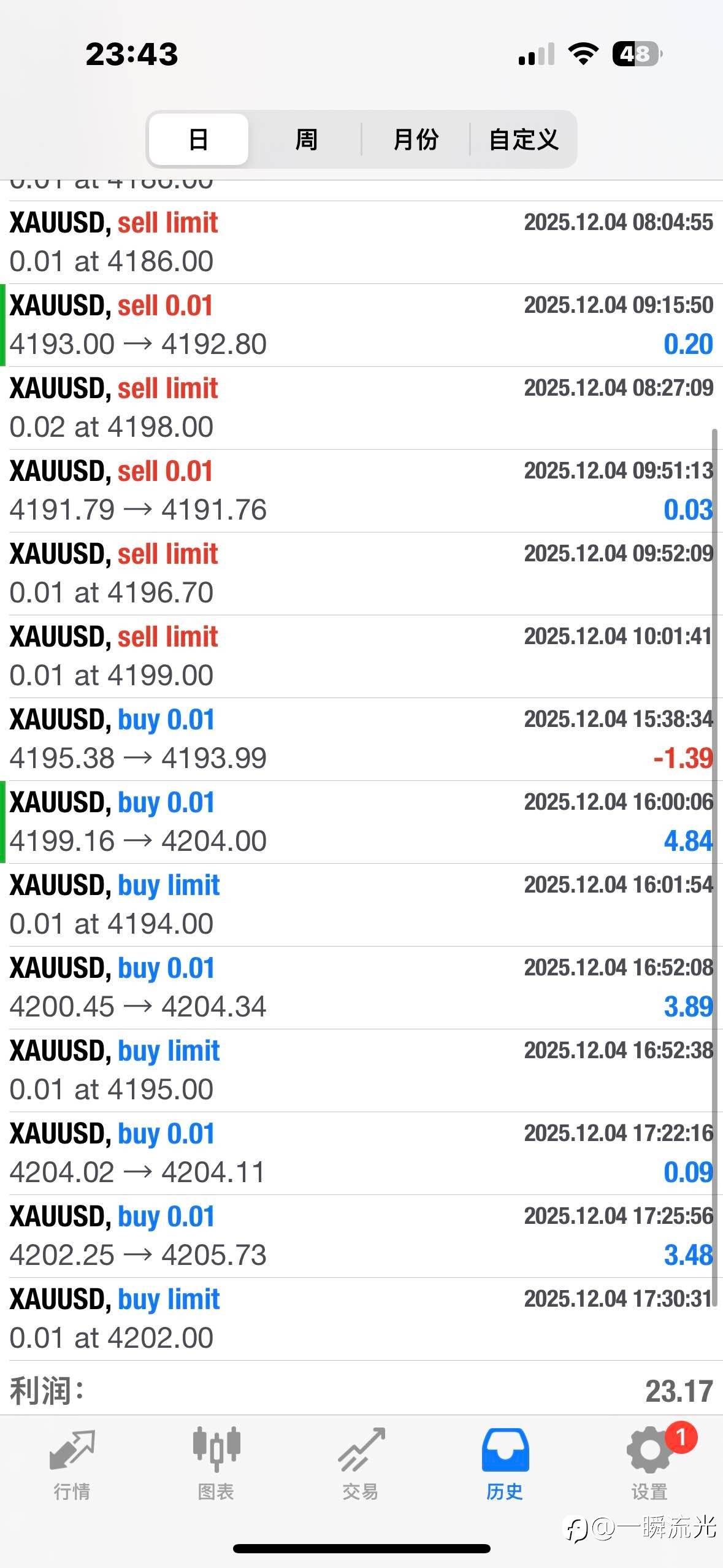 下班下班,这周的多头走的有点很弱,涨多少跌回多少,有点像洗盘,好像孕育一波行情出来的感觉,多头,估计下周4300能看见了,今天操作还可以接受,亏的那一笔是勇于面对错误提前手动止了,真往下走了,然后再上来。 还是那句话保持不爆仓!!时间见证一切!$$ 风险提示:本文所述仅代表作者个人观点,不代表 Followme 的官方立场。Followme 不对内容的准确性、完整性或可靠性作出任何保证,对于基于该内容所采取的任何行为,不承担任何责任,除非另有书面明确说明。