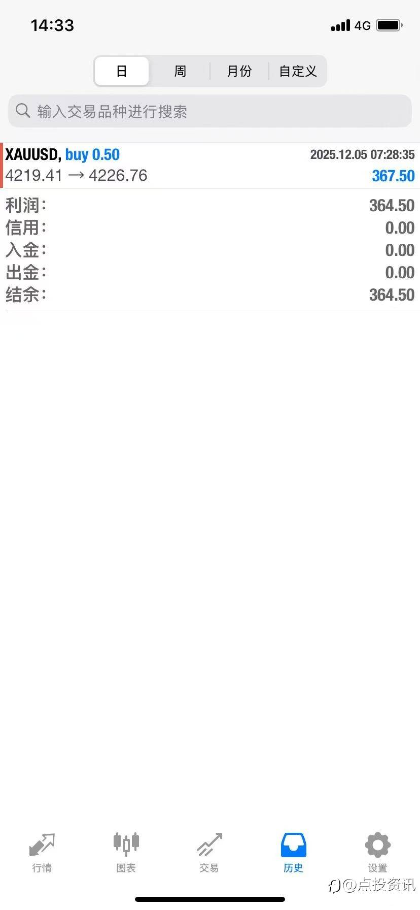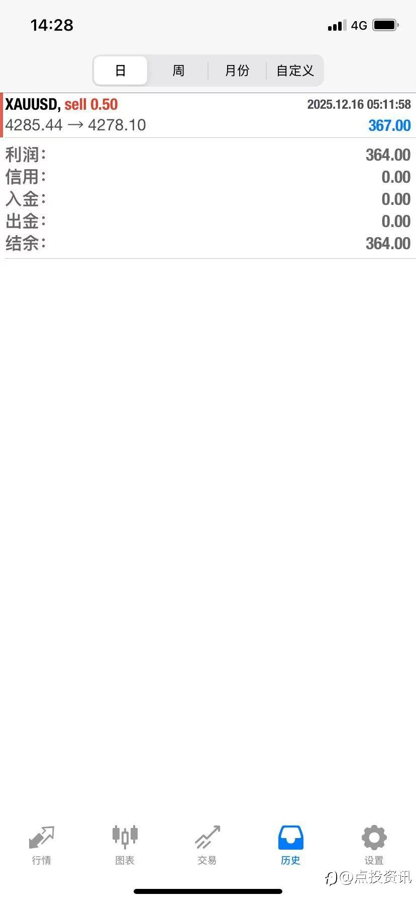 📣黄金趋势策略 ✔单单有止盈止损 ✔拒绝爆仓 ✔12月第4单增值364.5美金 风险提示:本文所述仅代表作者个人观点,不代表 Followme 的官方立场。Followme 不对内容的准确性、完整性或可靠性作出任何保证,对于基于该内容所采取的任何行为,不承担任何责任,除非另有书面明确说明。
