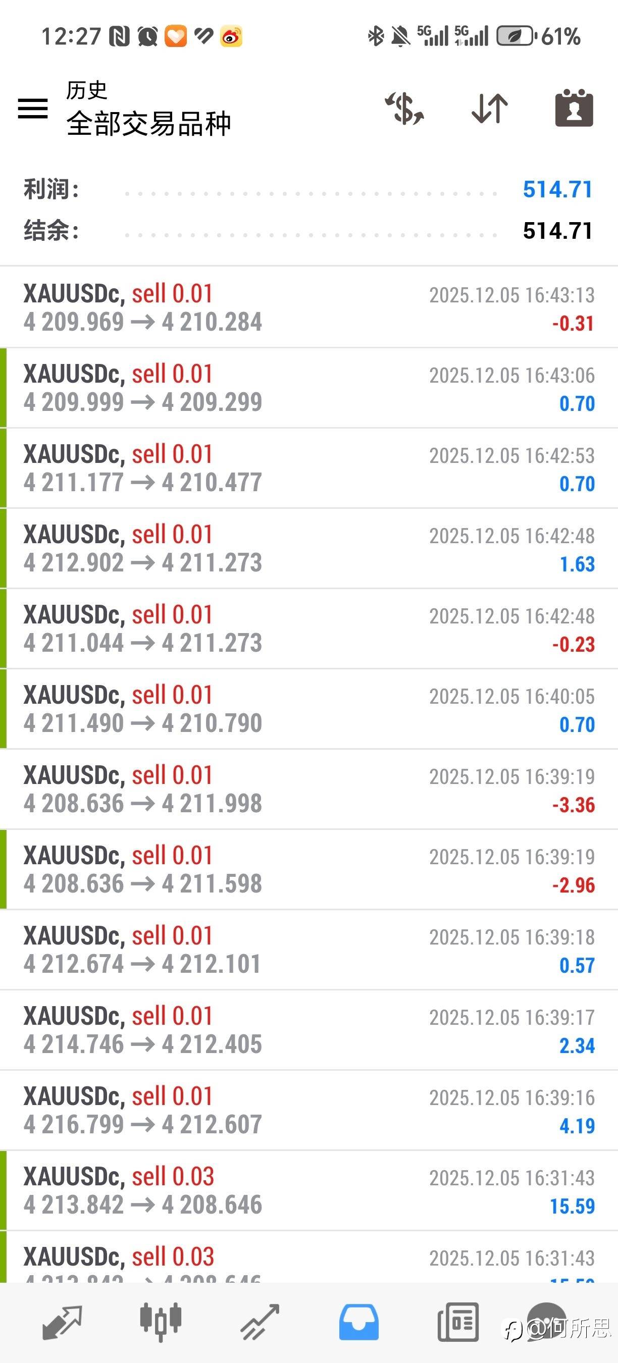 #每日交易打卡#昨天这波基本没回撤的60美金幅度下跌时,我在跟管儿子管得心力交瘁的前同事聊她儿子教育问题。。。 等我再看盘时都已经开始反弹状态了。这行情也是鸡贼,那个时段一般波动都不大的,可能是因为周五的原因。 利润比前一张图变少了,手数却有45手,手工干预的问题。