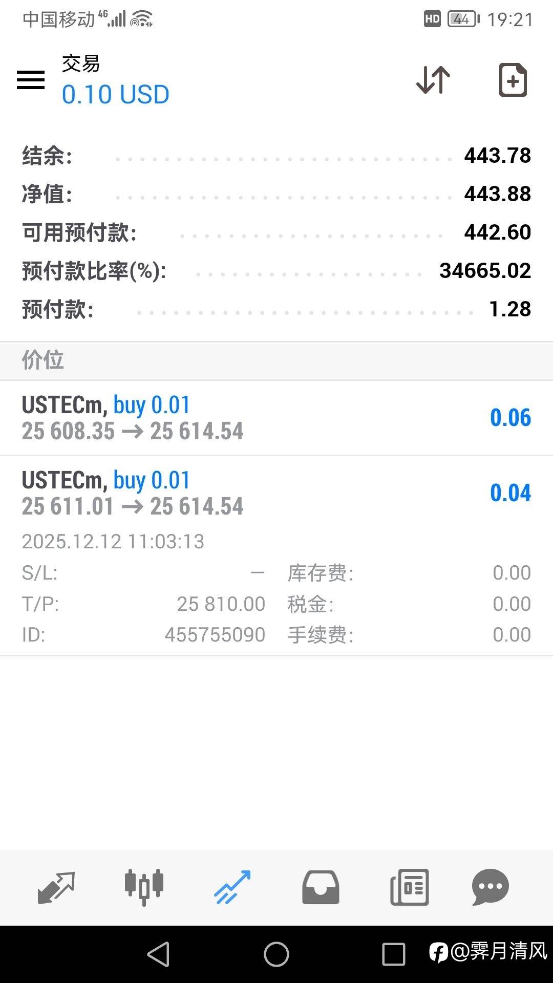 #每日交易打卡#继续三箭齐发,美分户来到3374.27美分,参赛户头经历降息夜,来到443.78美元,打野户头继续恒指纳指持仓,来到153.03美元