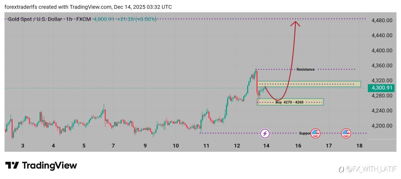 Expecting a pullback towards the 4270-4260 zone for better entry, targeting higher prices.