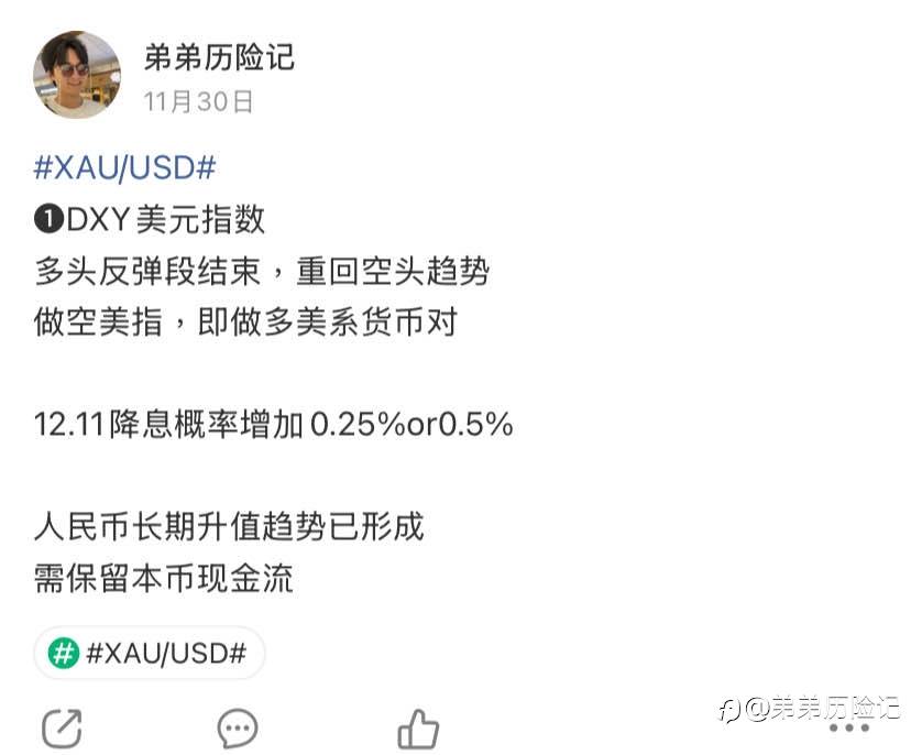 #XAU/USD# 美元指数观点不变~ RMB本币长期升值的时代 风险提示:本文所述仅代表作者个人观点,不代表 Followme 的官方立场。Followme 不对内容的准确性、完整性或可靠性作出任何保证,对于基于该内容所采取的任何行为,不承担任何责任,除非另有书面明确说明。