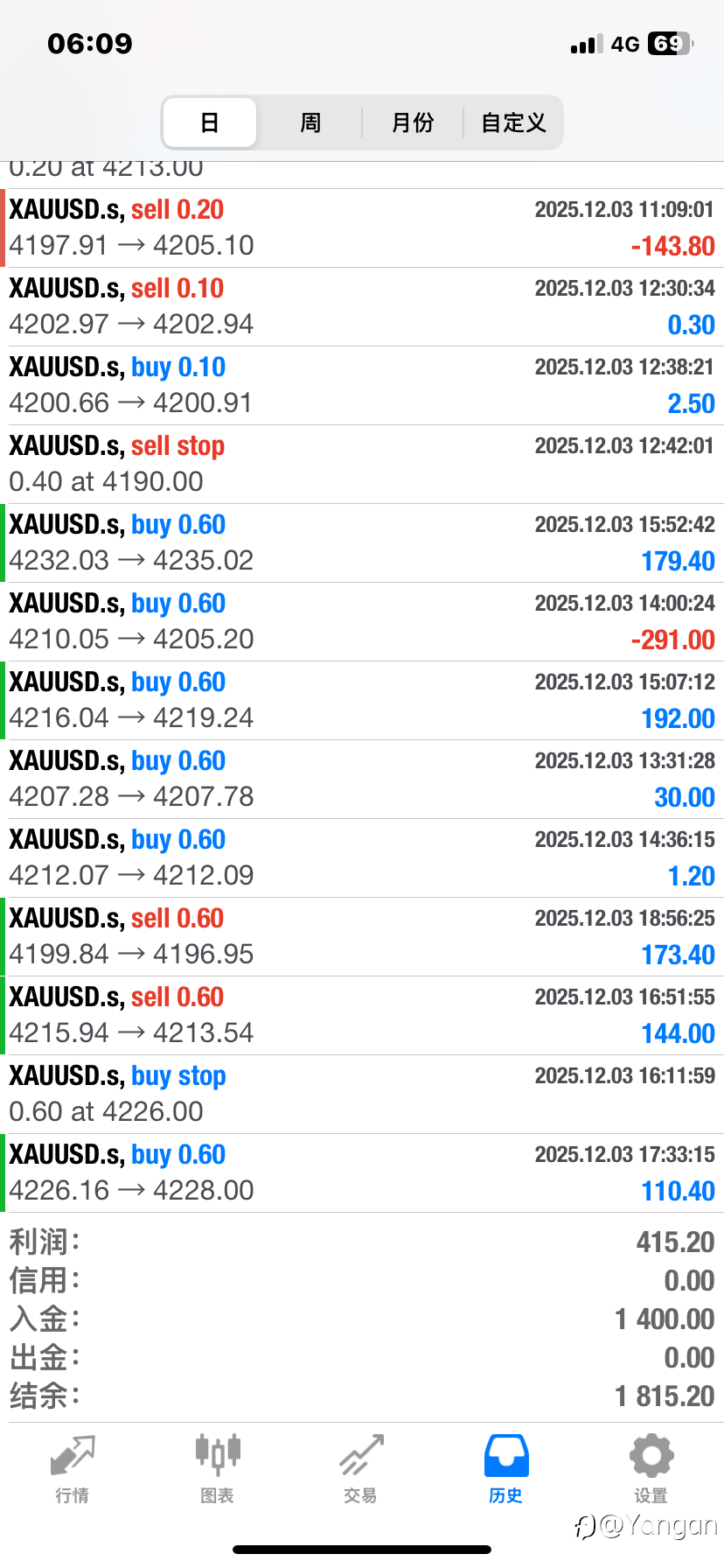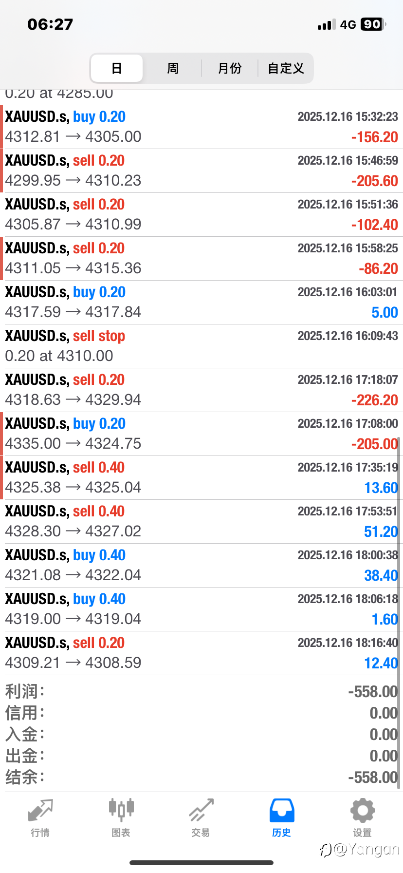 #每日交易打卡# 20251215,帐户年龄:1D。初始资金1500美金,今日做单好多单,合计盈利66。亏损425。亏损单5单,最高单子亏损125。总结亏损原因:做震荡,看空,连续止损3单,有点沉不住气开始上头了,。还是要义无反顾坚持走不做震荡,不猜顶的路子。还好,晚上的计划交易补上了亏损,现在帐户金额1566。打卡第一天