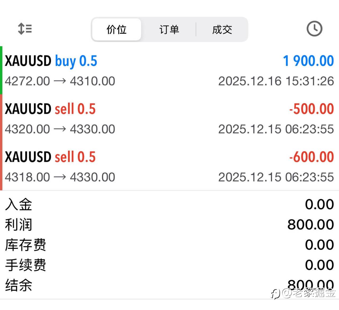 周二黄金探底回升,而老黎布局多空1损1盈综合收割16点行情入账;