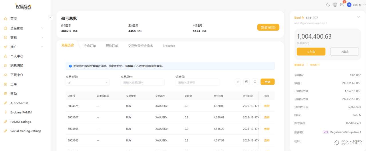 一觉醒来 已经赚了平凡上班族一天的收益 大饼趋势EA 风险提示:本文所述仅代表作者个人观点,不代表 Followme 的官方立场。Followme 不对内容的准确性、完整性或可靠性作出任何保证,对于基于该内容所采取的任何行为,不承担任何责任,除非另有书面明确说明。