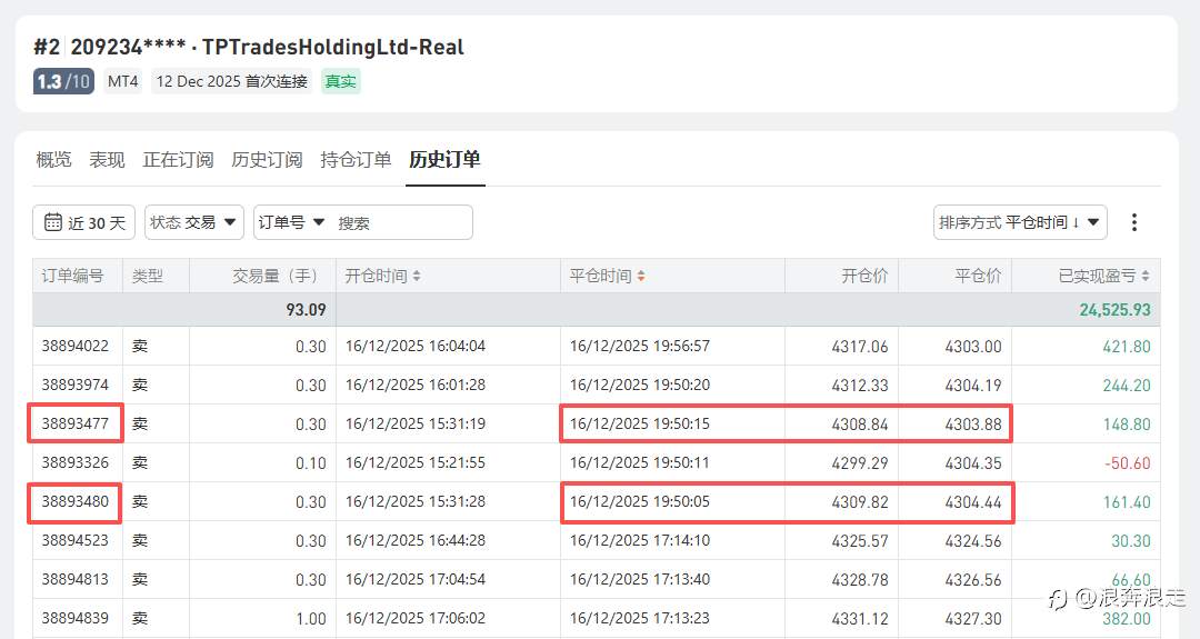 我就是想先看看这样的高手怎么交易的,关注他们的开平仓动态。然后今天上午看他连续开空,浮亏不断扩大,黄金还在涨。想知道下一步怎么处理,是止损还是继续扛。结果到中午发现这些浮亏的订单都从持仓里面消失了,出现在订单历史里面。然后成交记录 居然变成是昨天平仓的,亏损的单子变成盈利的。难怪5000轻轻松松几天就可以翻倍,诸如这样的账户不少,大家不要被骗。