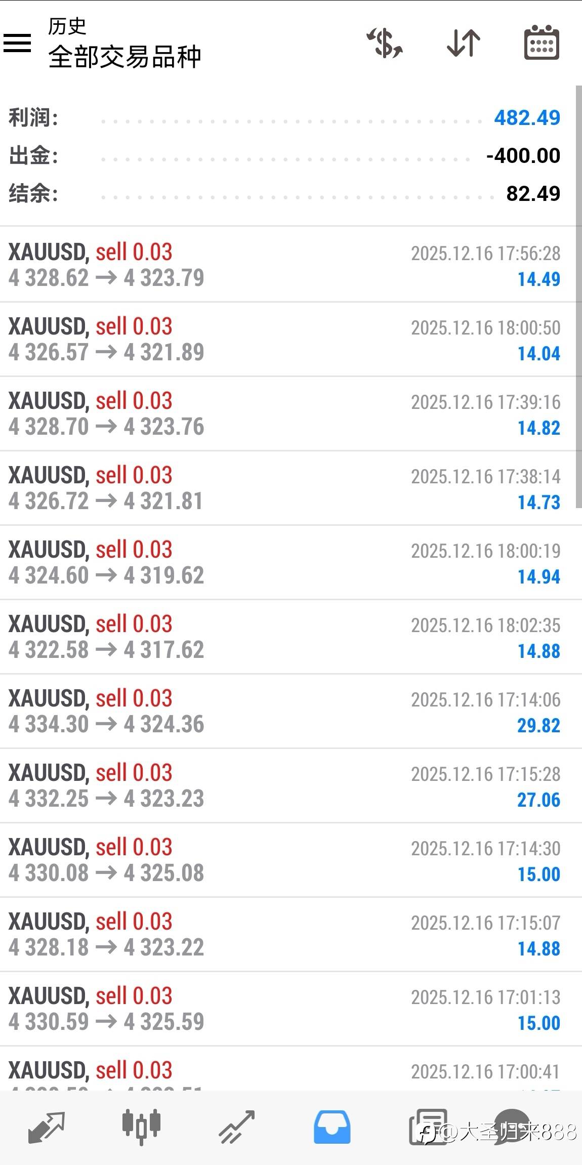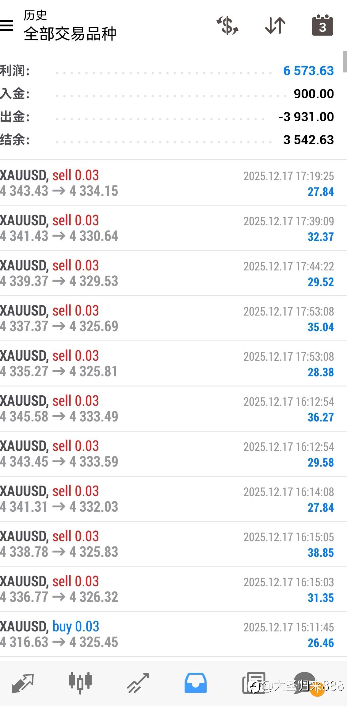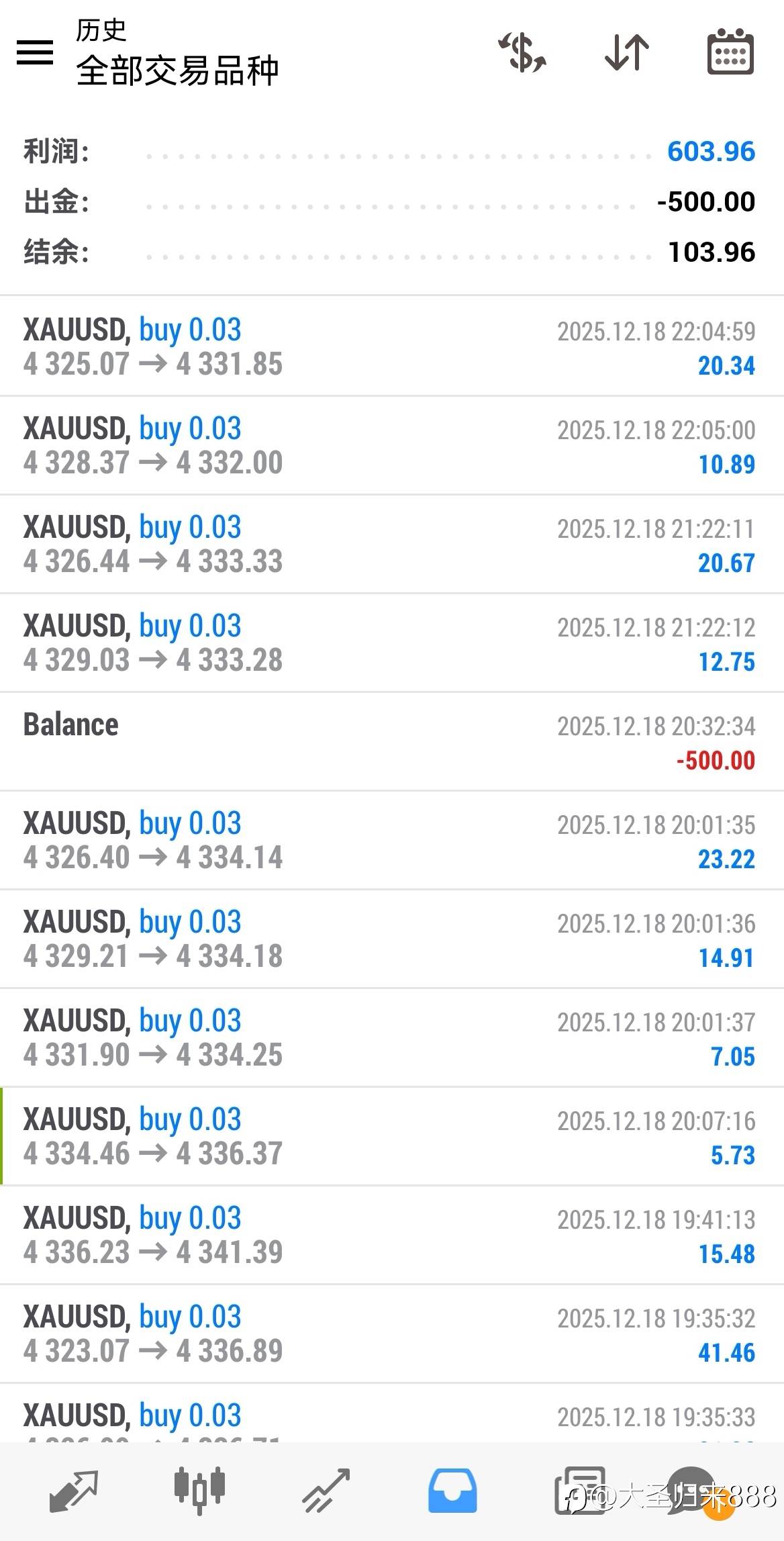 今天盈利500美金左右,继续加油,感谢关注 风险提示:本文所述仅代表作者个人观点,不代表 Followme 的官方立场。Followme 不对内容的准确性、完整性或可靠性作出任何保证,对于基于该内容所采取的任何行为,不承担任何责任,除非另有书面明确说明。