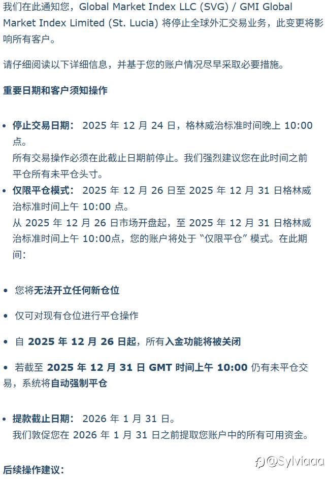 第一次遇到平台停止运营,幸运的是平台以这样体面的方式退场。 愿这个行业能多一些这样的良心平台🌹 风险提示:本文所述仅代表作者个人观点,不代表 Followme 的官方立场。Followme 不对内容的准确性、完整性或可靠性作出任何保证,对于基于该内容所采取的任何行为,不承担任何责任,除非另有书面明确说明。
