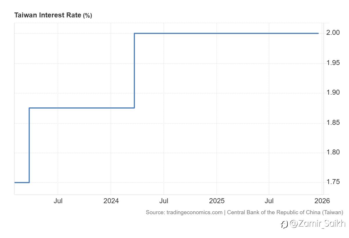 Taiwan’s central bank kept its key rate at 2% in Dec 2025, extending the policy pause as inflation stays moderate.