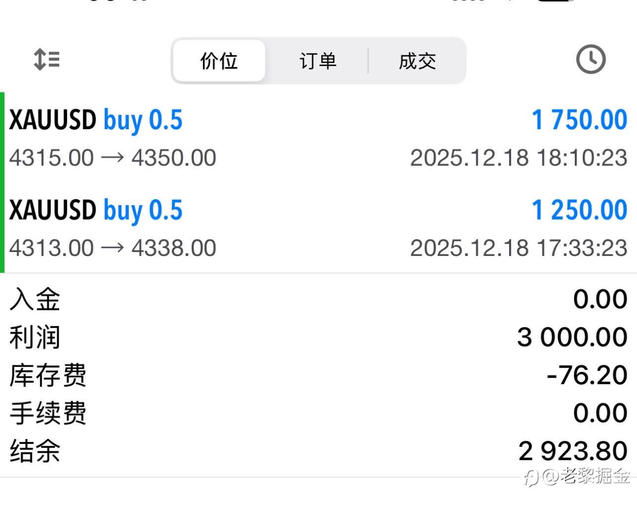 #XAU/USD# 周四黄金整体呈现冲高回落格局,而老黎日内回落买涨思路4313/15多单分别止盈4338/50一线综合收割60点行情入账;