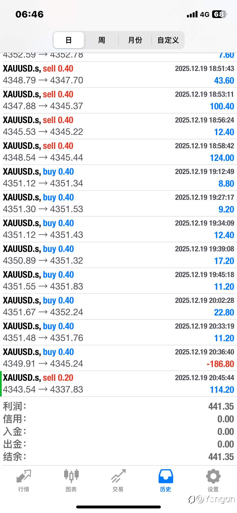 #每日交易打卡# 20251219。帐户年龄:5D。今天盈利441,帐户资金1808。打卡第5天