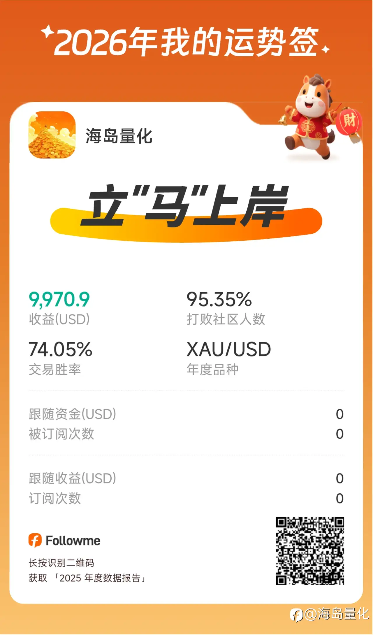 海岛量化创始人老汪语录:真正的成功交易者是不用去做交易了,因为他已经通过交易实现了财富自由。 风险提示:本文所述仅代表作者个人观点,不代表 Followme 的官方立场。Followme 不对内容的准确性、完整性或可靠性作出任何保证,对于基于该内容所采取的任何行为,不承担任何责任,除非另有书面明确说明。