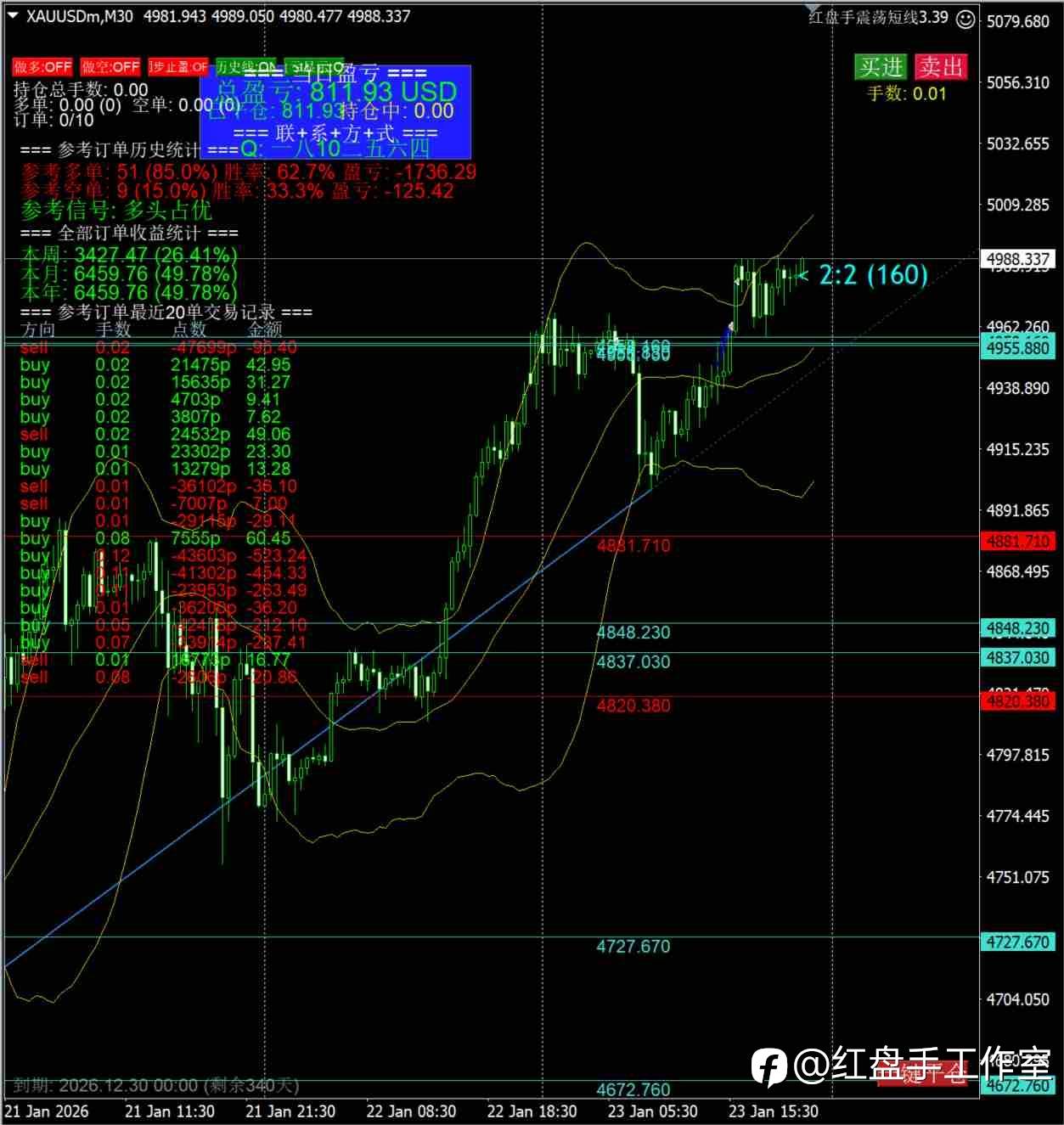 过去的两个月里,我在原有交易策略上,增加了合适的止损方案,增加了资金恢复方案,增加了刷单(一些资管方对单数要求)功能,并且只在ex主帐户(复制信号Gold trend)尝试新的方案。感谢各位仍然对我感兴趣,马上迎来新的一年,大家加油! 风险提示:本文所述仅代表作者个人观点,不代表 Followme 的官方立场。Followme 不对内容的准确性、完整性或可靠性作出任何保证,对于基于该内容所采取的任何行为,不承担任何责任,除非另有书面明确说明。