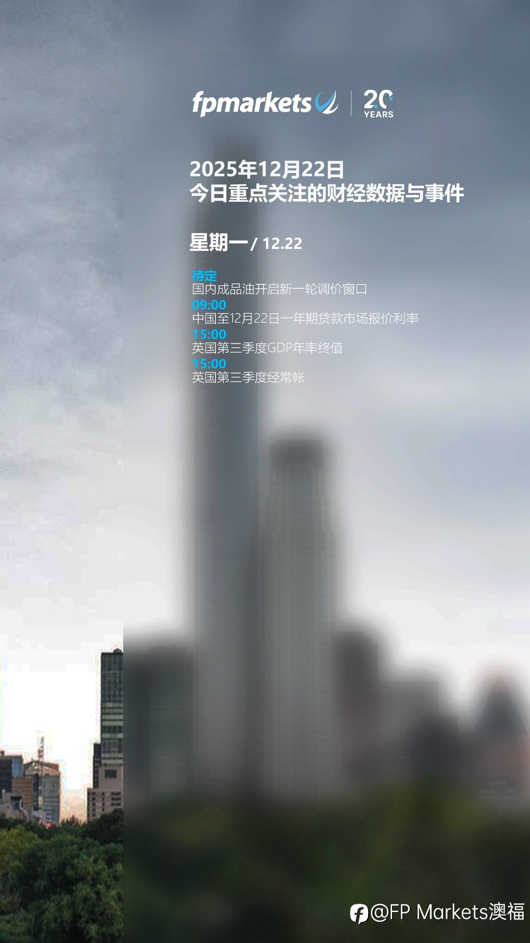 【FP Markets今日重点关注的财经数据与事件:2025年12月22日 周一】#FPMarkets澳福#