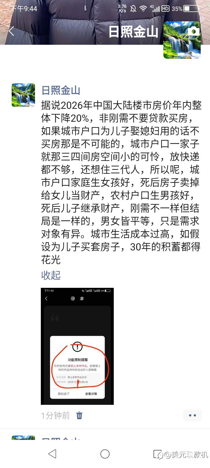 据说2026年中国大陆楼市房价年内整体下降20%,非刚需不要贷款买房,如果城市户口为儿子娶媳妇用的话不买房那是不可能的,城市户口一家子就那三四间房空间小的可怜,放快递都不够,还想住三代人,所以呢,城市户口家庭生女孩好,死后房子卖掉给女儿当财产,农村户口生男孩好,死后儿子继承财产,刚需不一样但结局是一样的,男女皆平等,只是需求对象有异。城市生活成本过高,如假设为儿子买套房子,30年的积蓄都得花光