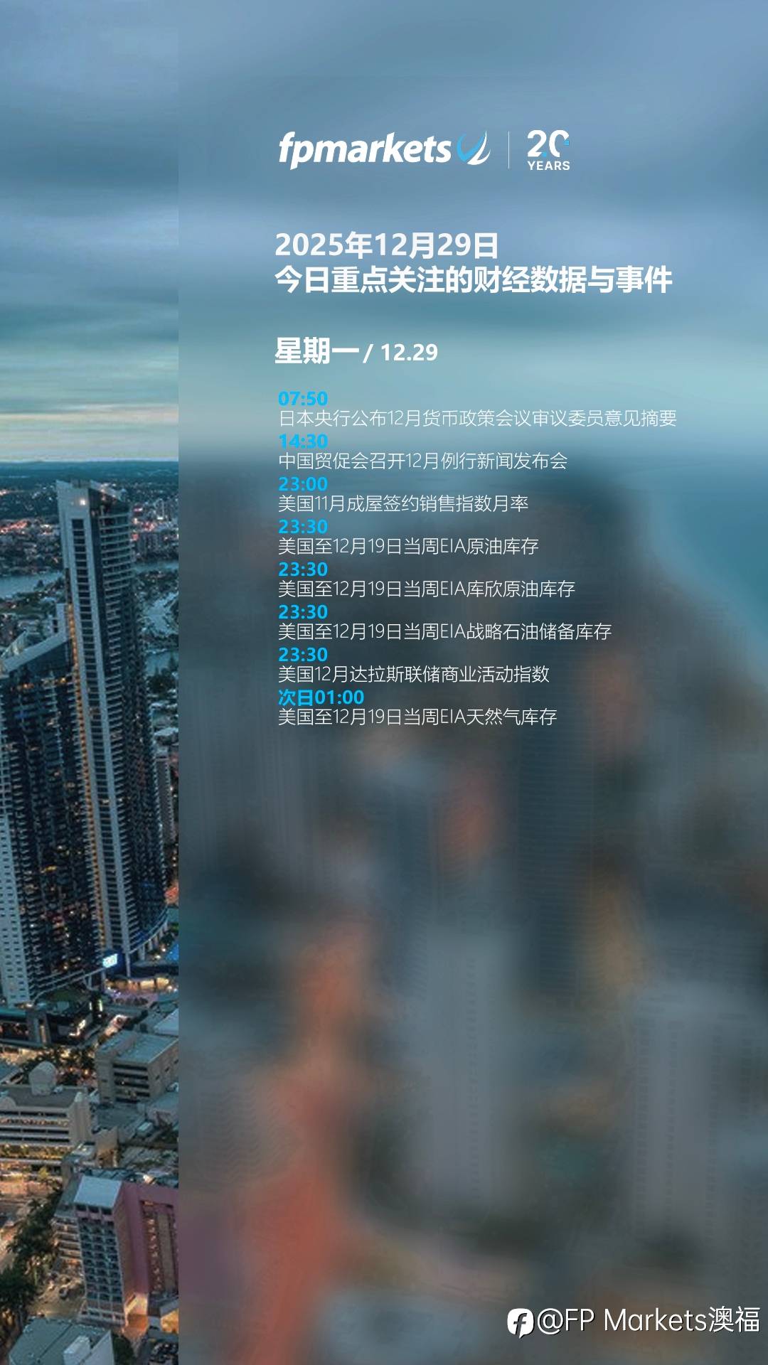 【FP Markets今日重点关注的财经数据与事件:2025年12月29日 周一】#FPMarkets澳福#