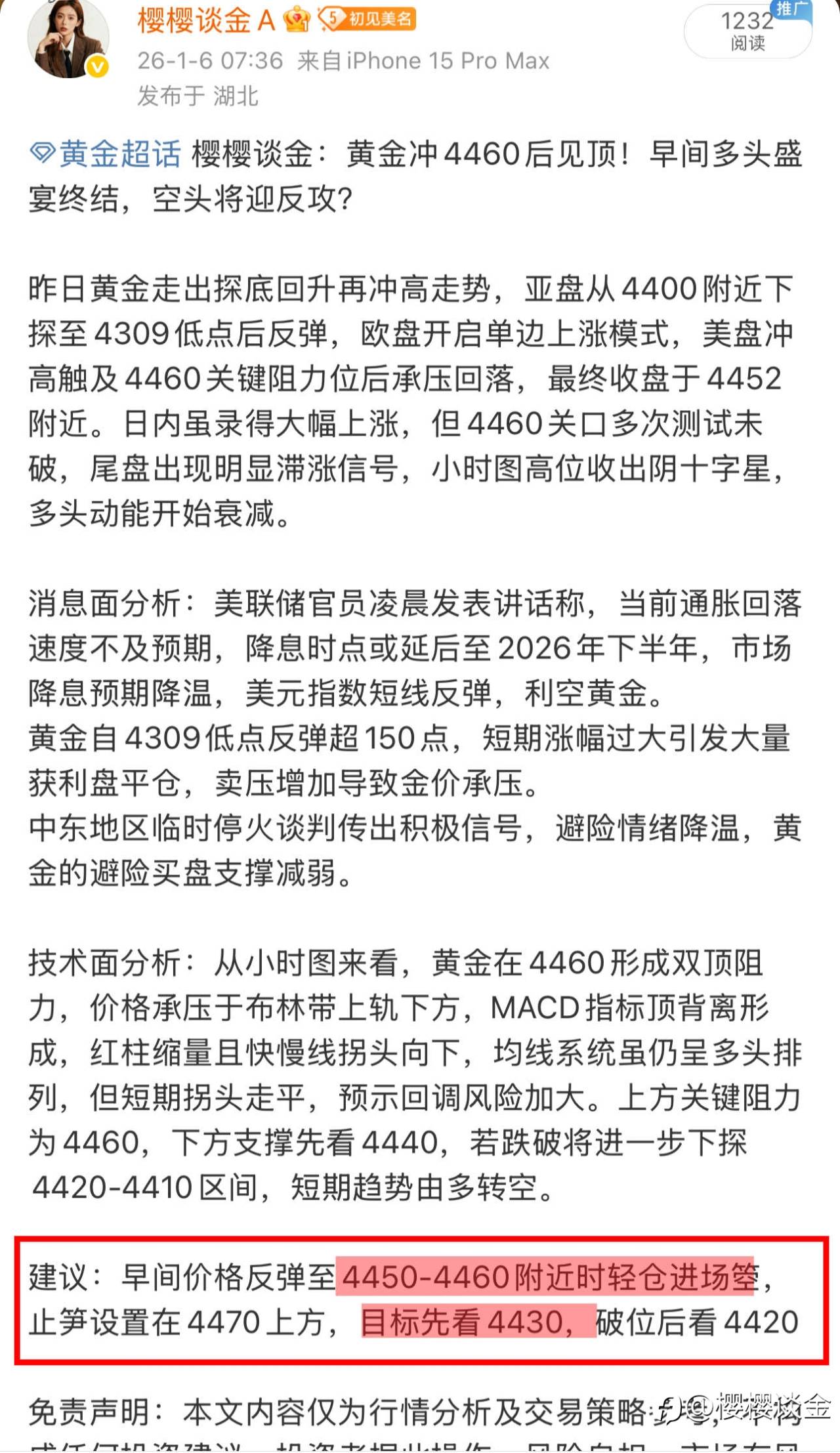 #XAU/USD# 早间全网明确反弹至4450附近箜,果然不负所望!趋势研判,从不模棱两可!