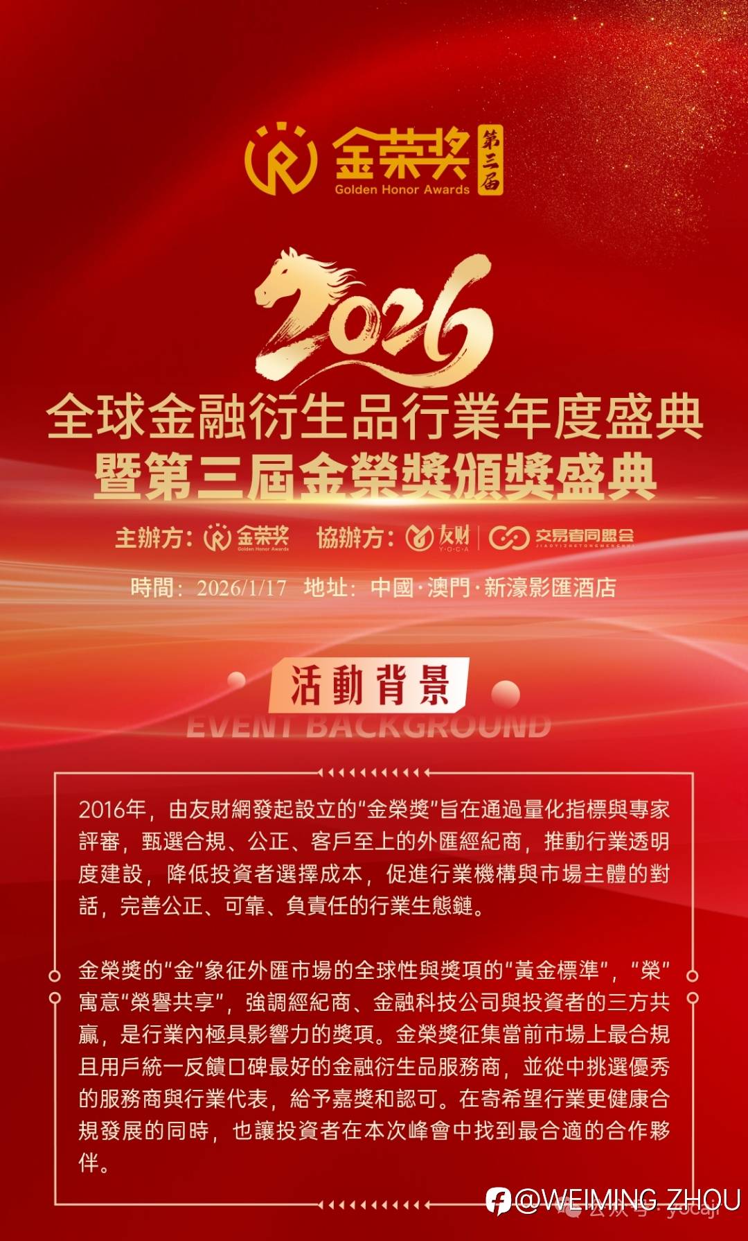 当全球外汇市场日均交易量突破7.5万亿美元大关,当金融科技浪潮席卷交易生态,当投资者对行业透明度与专业标杆的呼声日益高涨,一个声音在呼唤:第三届金荣奖,回来了。 这不是一次简单的行业聚会,而是一次迟到了八年的荣耀回归,一场为金融衍生品行业重新树立黄金标准的盛事。 01 荣耀回归,从上海到澳门的跨越 时间回溯到2016年,首届金荣奖在上海启航。在那个外汇行业快速发展却良莠不齐的年代,金荣奖如一盏明灯,首次以“量化指标+专家评审”的严谨机制,为市场筛选出合规、公正的优质机构。