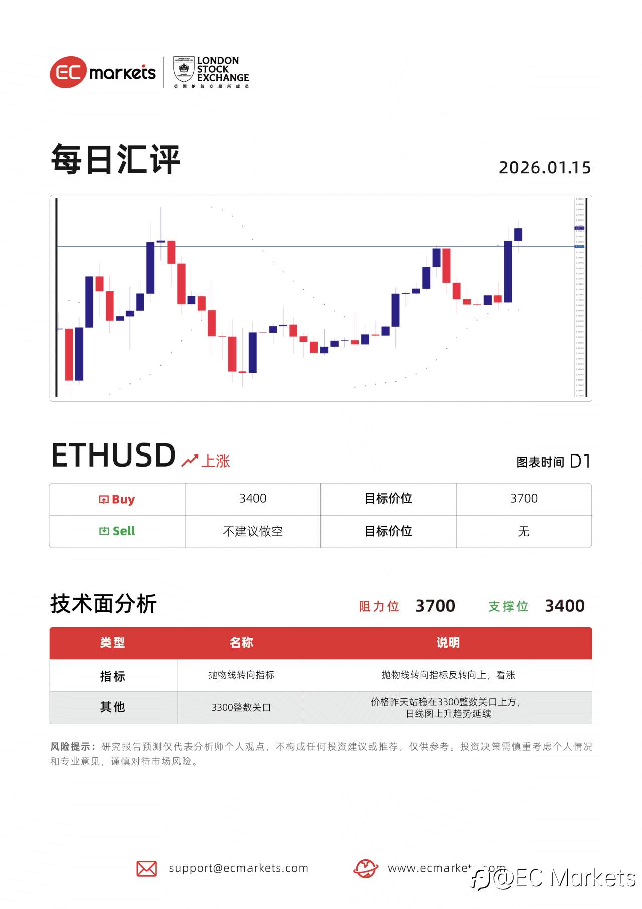 EC Markets 每日汇评 | 1月15日ETHUSD #ECMarkets# #forextrading# #FX# #forexmarket# #trading# #ETH/USD# 风险提示:本文所述仅代表作者个人观点,不代表 Followme 的官方立场。Followme 不对内容的准确性、完整性或可靠性作出任何保证,对于基于该内容所采取的任何行为,不承担任何责任,除非另有书面明确说明。