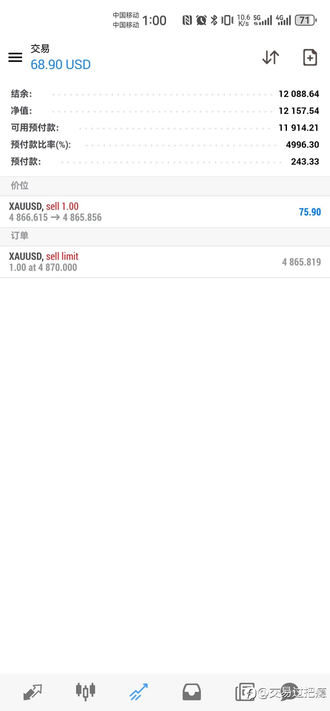 4870附近做空黄金,拿中长线,能赚不少! 风险提示:本文所述仅代表作者个人观点,不代表 Followme 的官方立场。Followme 不对内容的准确性、完整性或可靠性作出任何保证,对于基于该内容所采取的任何行为,不承担任何责任,除非另有书面明确说明。