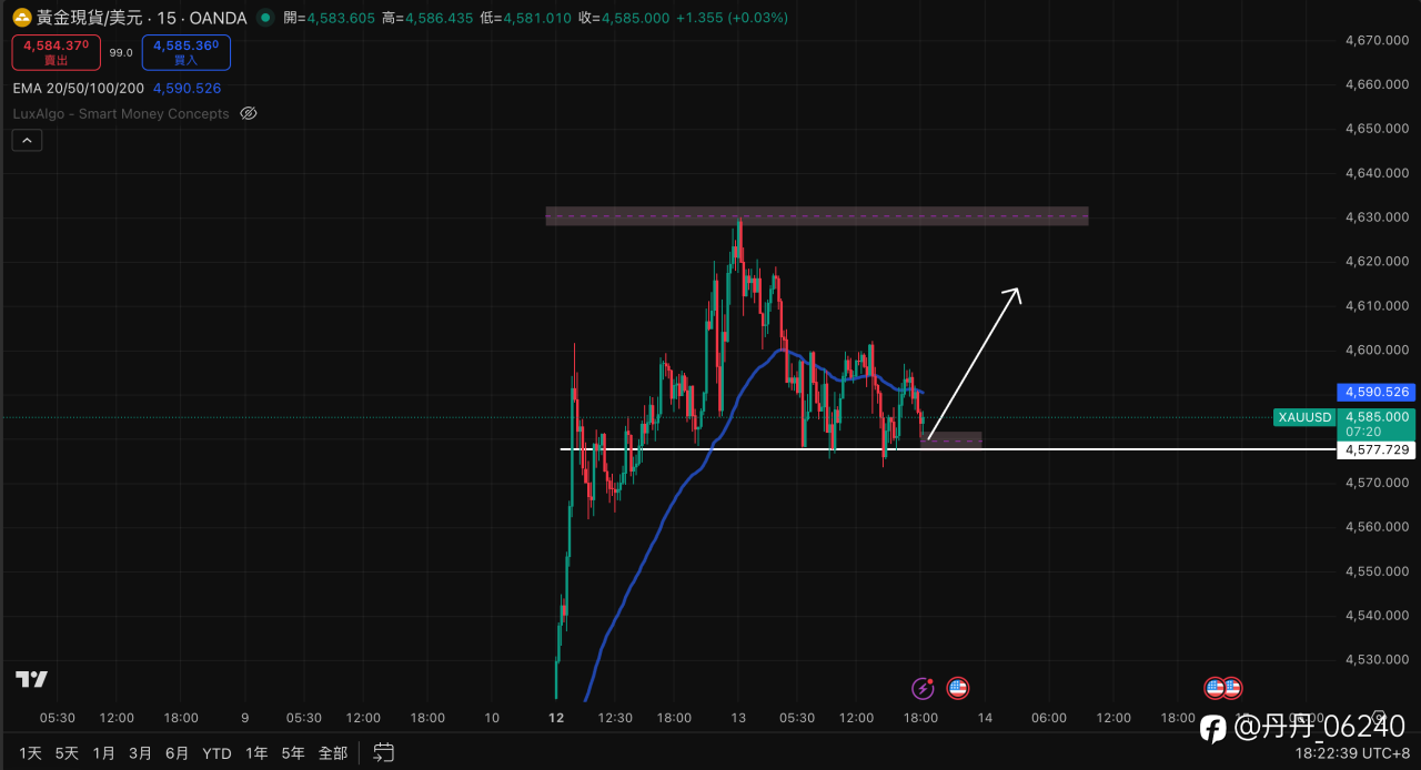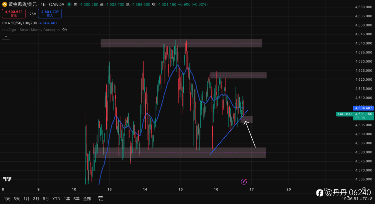 黃金在昨日觸及4580的低位後價格直接向上運行