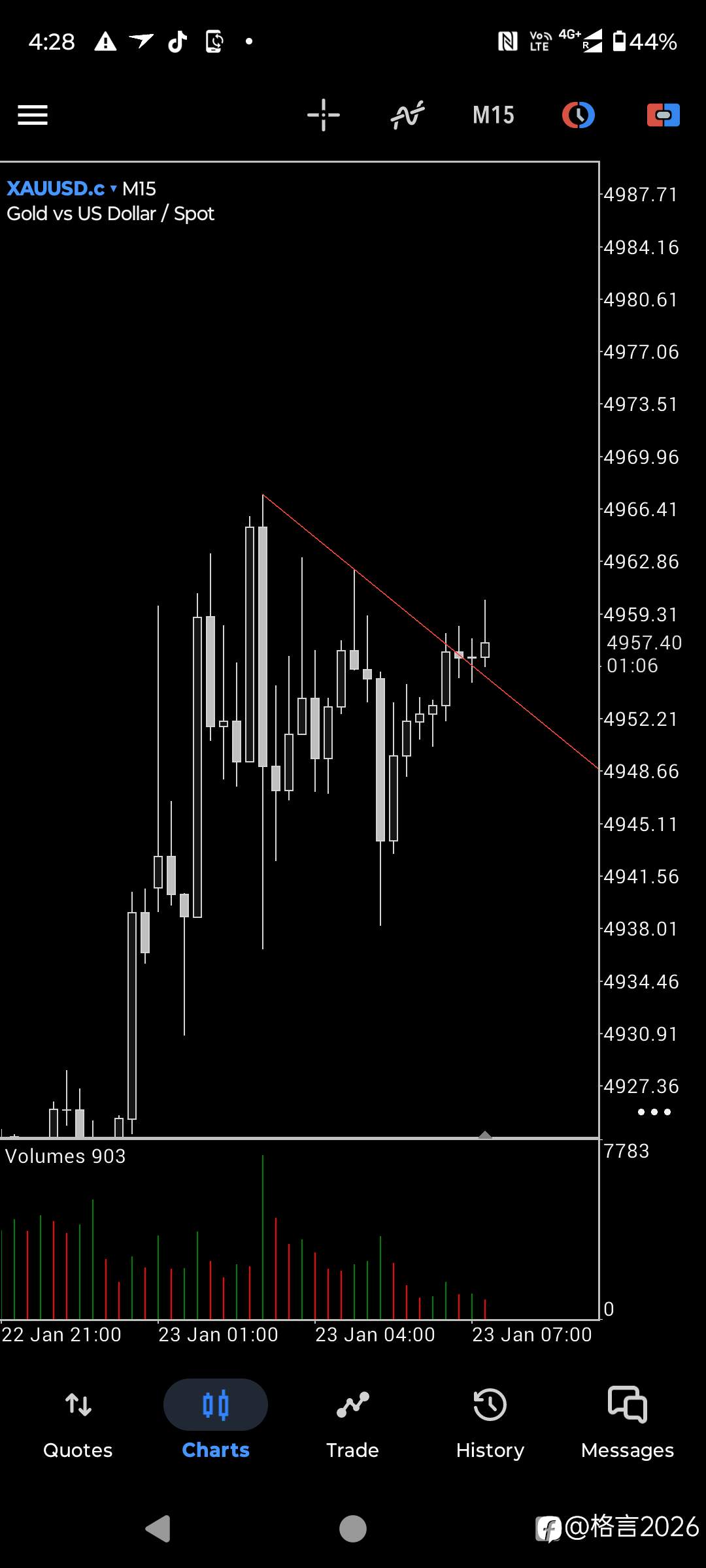 耐心等待,要么越过前高就瞬间放量上影,要么跌回红点里钻不出来,否则不空 #信号交易PK赛# #每日交易打卡# #黄金多头是否已经力竭?# 风险提示:本文所述仅代表作者个人观点,不代表 Followme 的官方立场。Followme 不对内容的准确性、完整性或可靠性作出任何保证,对于基于该内容所采取的任何行为,不承担任何责任,除非另有书面明确说明。