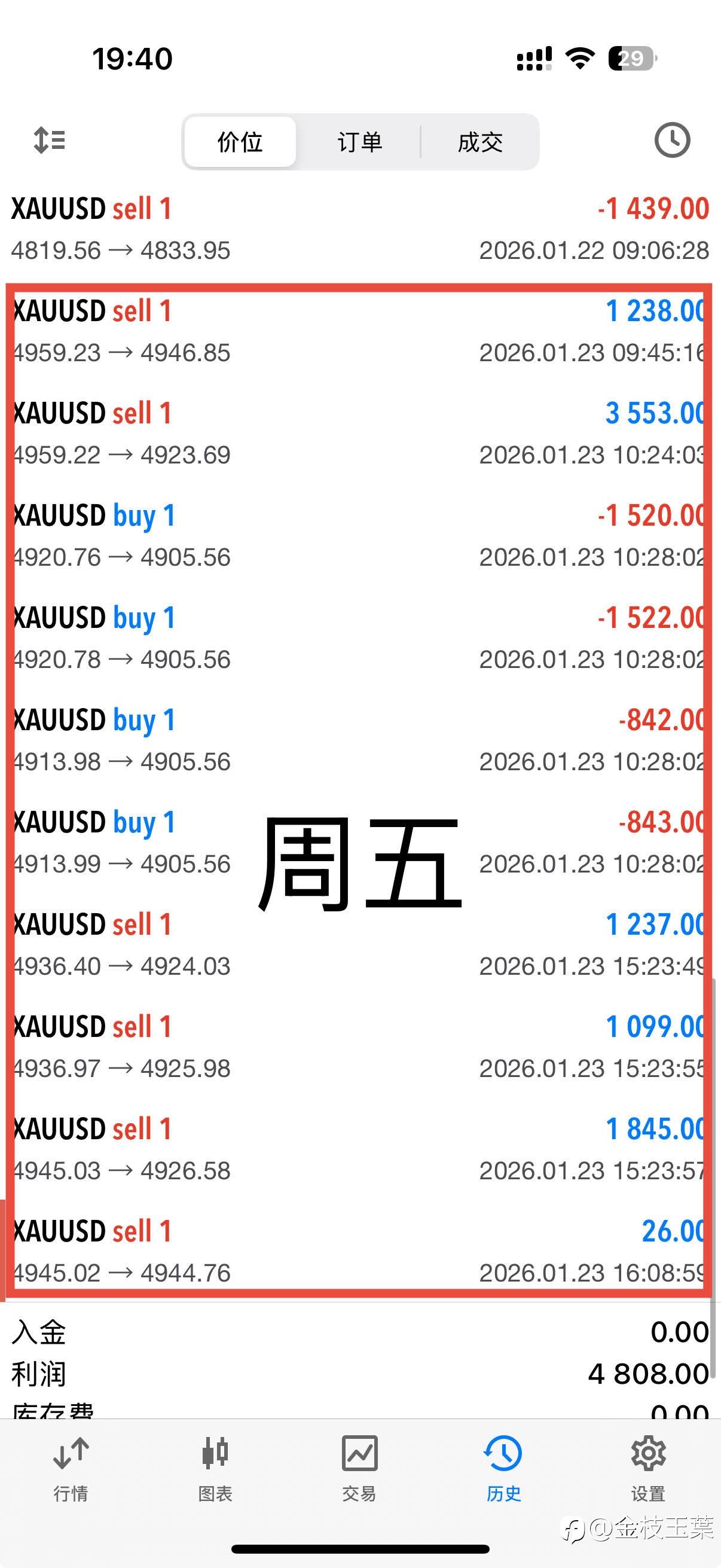 本周开仓12笔,整体小赚结束,短线落袋4800刀。