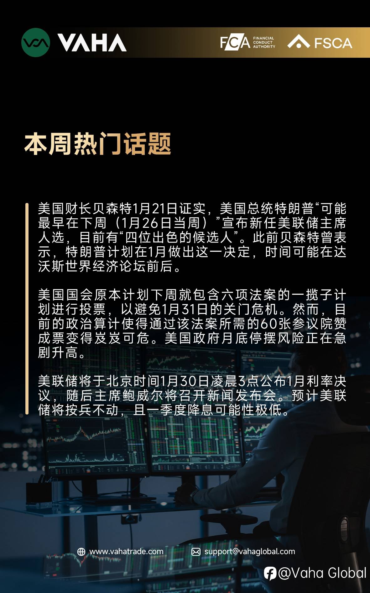 一周热点及交易前瞻(1.26—1.30) 风险提示:本文所述仅代表作者个人观点,不代表 Followme 的官方立场。Followme 不对内容的准确性、完整性或可靠性作出任何保证,对于基于该内容所采取的任何行为,不承担任何责任,除非另有书面明确说明。