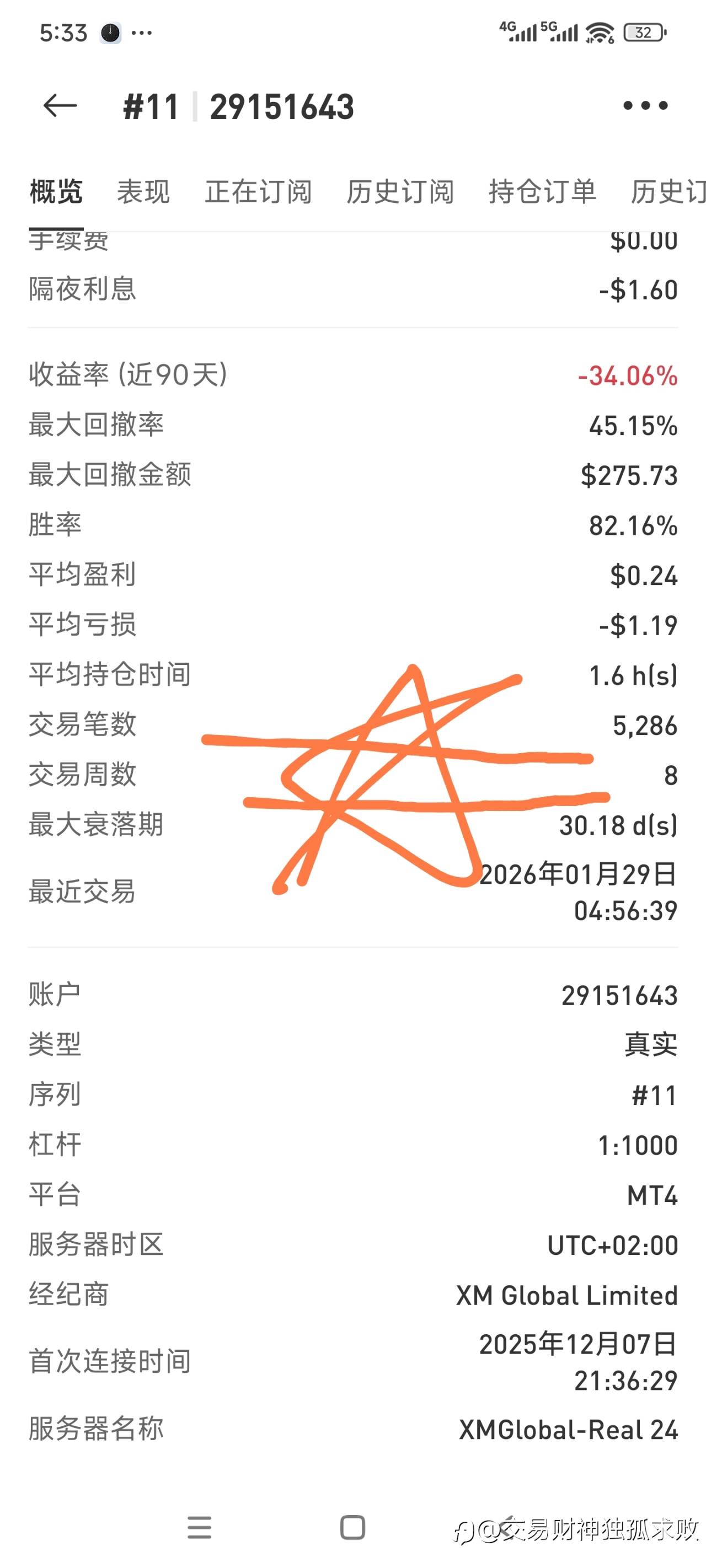 11号帐户,已做8周5286单,FM谁有这么高频?知道的人通知我一声,我去看一看,学一学! 风险提示:本文所述仅代表作者个人观点,不代表 Followme 的官方立场。Followme 不对内容的准确性、完整性或可靠性作出任何保证,对于基于该内容所采取的任何行为,不承担任何责任,除非另有书面明确说明。