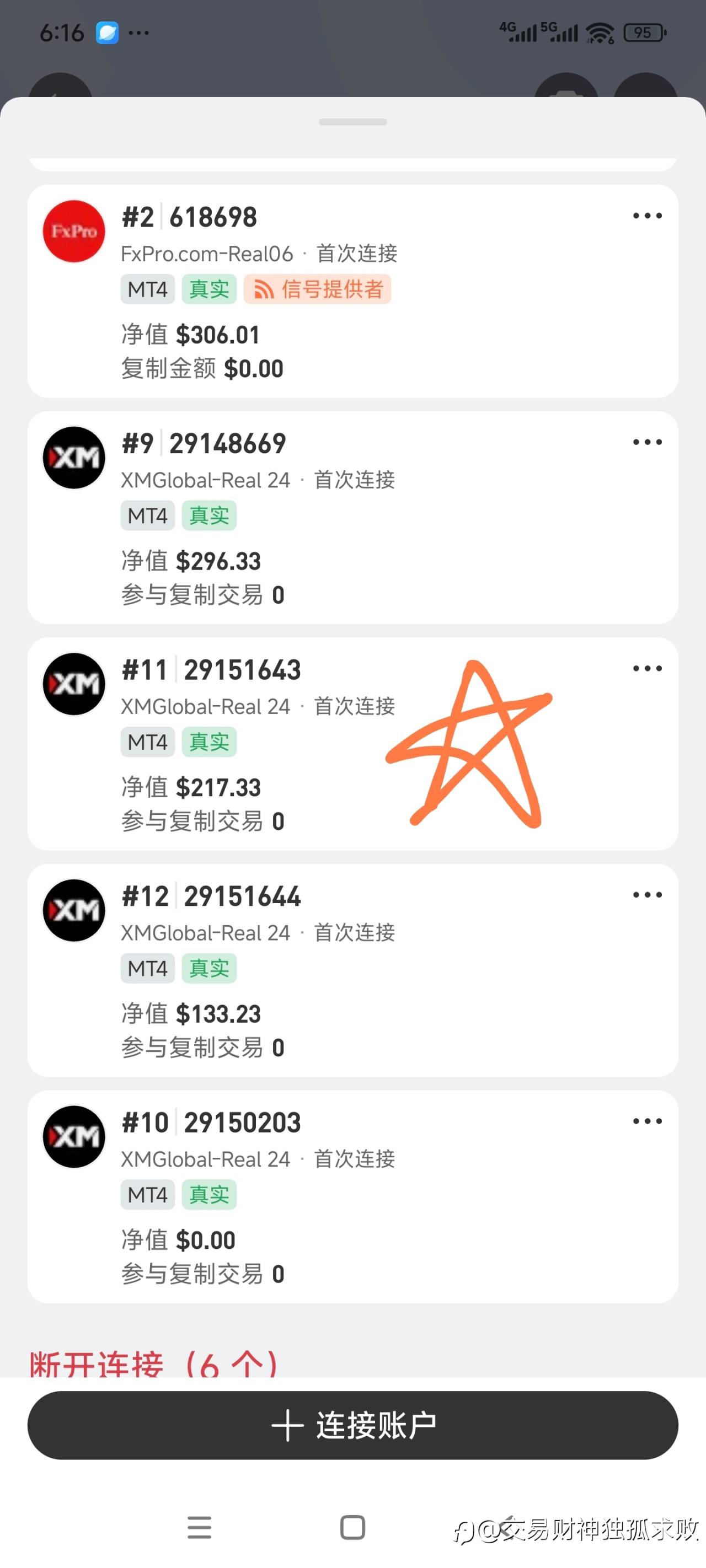 各帐户最新净值:11号净值已回升到了217刀,8周做了5707单! 风险提示:本文所述仅代表作者个人观点,不代表 Followme 的官方立场。Followme 不对内容的准确性、完整性或可靠性作出任何保证,对于基于该内容所采取的任何行为,不承担任何责任,除非另有书面明确说明。