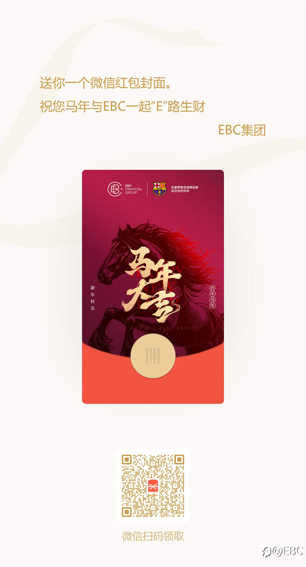 喜随红包至 福向此刻来!EBC马年专属红包封面 把祝福装进红包 让好运在此刻启程 风险提示:本文所述仅代表作者个人观点,不代表 Followme 的官方立场。Followme 不对内容的准确性、完整性或可靠性作出任何保证,对于基于该内容所采取的任何行为,不承担任何责任,除非另有书面明确说明。