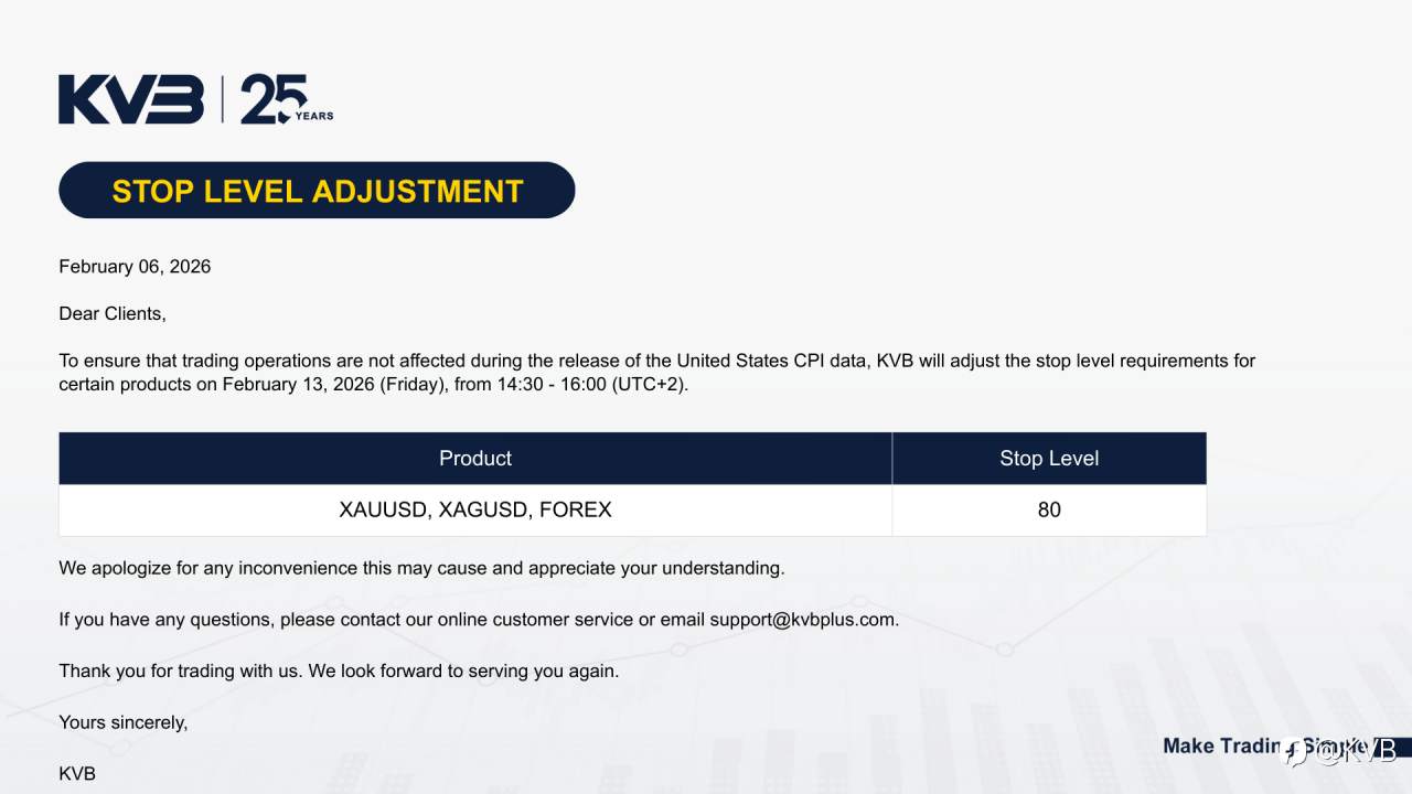 To help ensure stable trading conditions during the release of the United States CPI data, KVB will temporarily adjust stop level requirements for selected products.