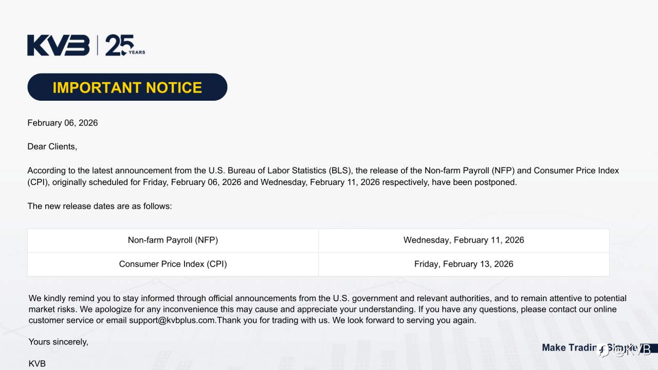 🔹 Non-Farm Payroll (NFP): Now releasing on Wednesday, 11 February 2026