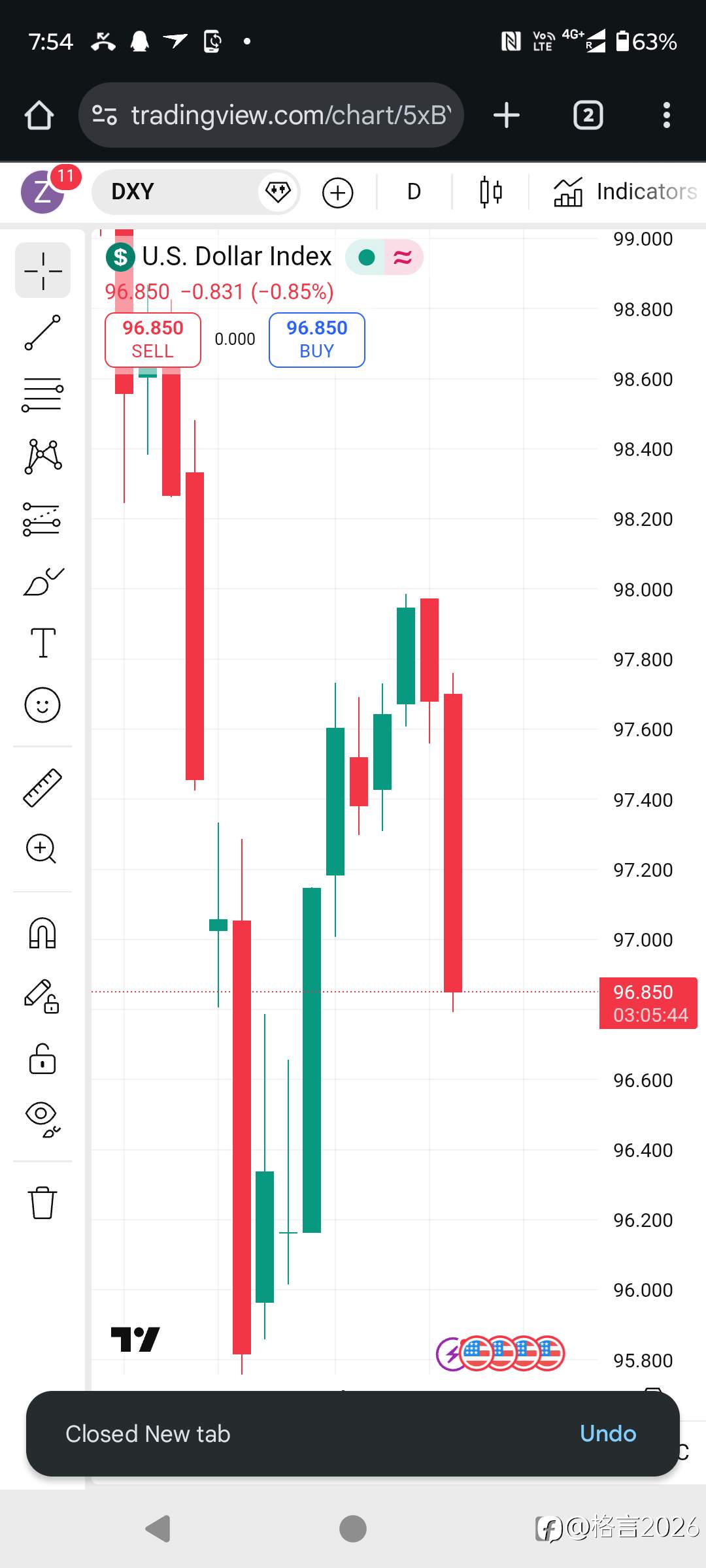 美元跌回缺口下方,黄金牛市即将恢复 风险提示:本文所述仅代表作者个人观点,不代表 Followme 的官方立场。Followme 不对内容的准确性、完整性或可靠性作出任何保证,对于基于该内容所采取的任何行为,不承担任何责任,除非另有书面明确说明。