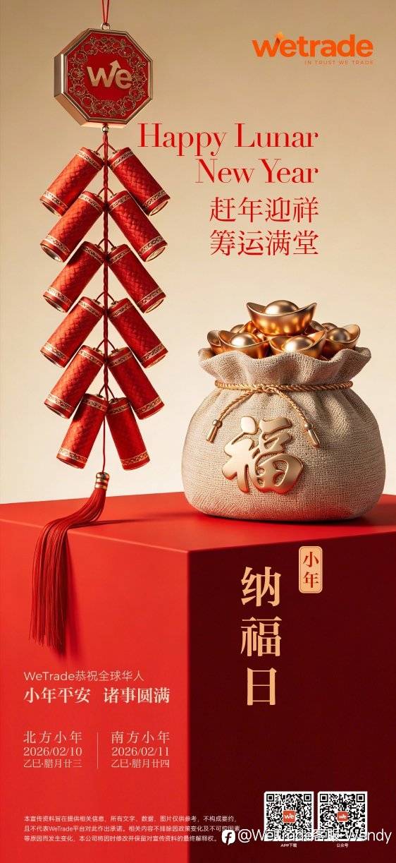 赶年迎祥,筹运满堂 值此小年纳福之际 WeTrade恭祝全球华人 平安顺遂,诸事圆满!🧨 小年已至,大年不远,我们马到成功! #XAU/USD##FOLLOWME交易大赛##WeTrade众汇# 风险提示:本文所述仅代表作者个人观点,不代表 Followme 的官方立场。Followme 不对内容的准确性、完整性或可靠性作出任何保证,对于基于该内容所采取的任何行为,不承担任何责任,除非另有书面明确说明。