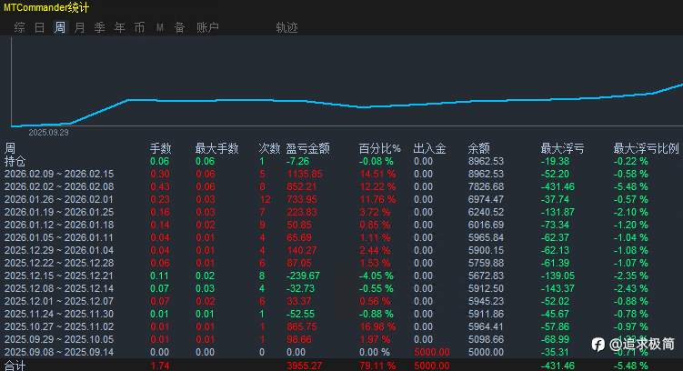 天枢EA 2.0 专为波段行情设计的策略,截止目前5个月总盈利79.11%,最大浮亏5.48% 风险提示:本文所述仅代表作者个人观点,不代表 Followme 的官方立场。Followme 不对内容的准确性、完整性或可靠性作出任何保证,对于基于该内容所采取的任何行为,不承担任何责任,除非另有书面明确说明。
