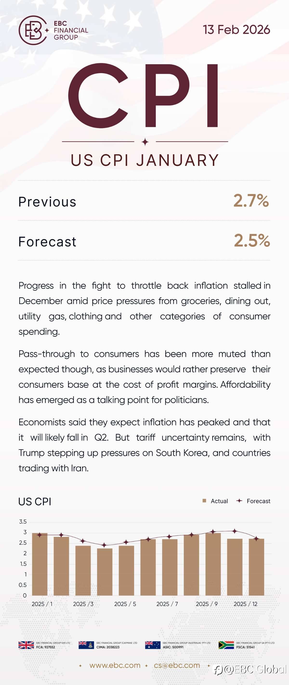US CPI January 13/2/2026 (Fri) Previous: 2.7% Forecast: 2.5%